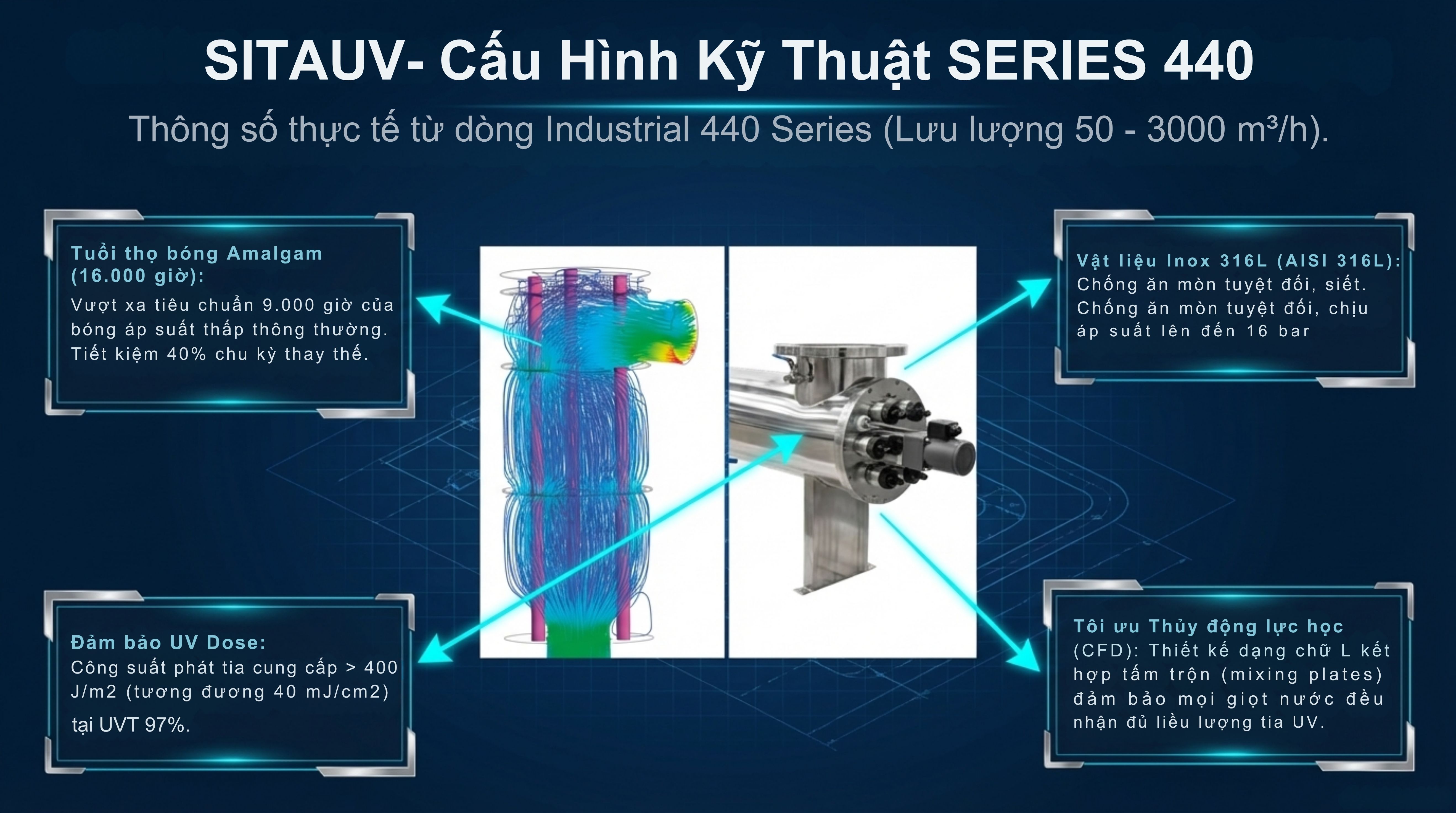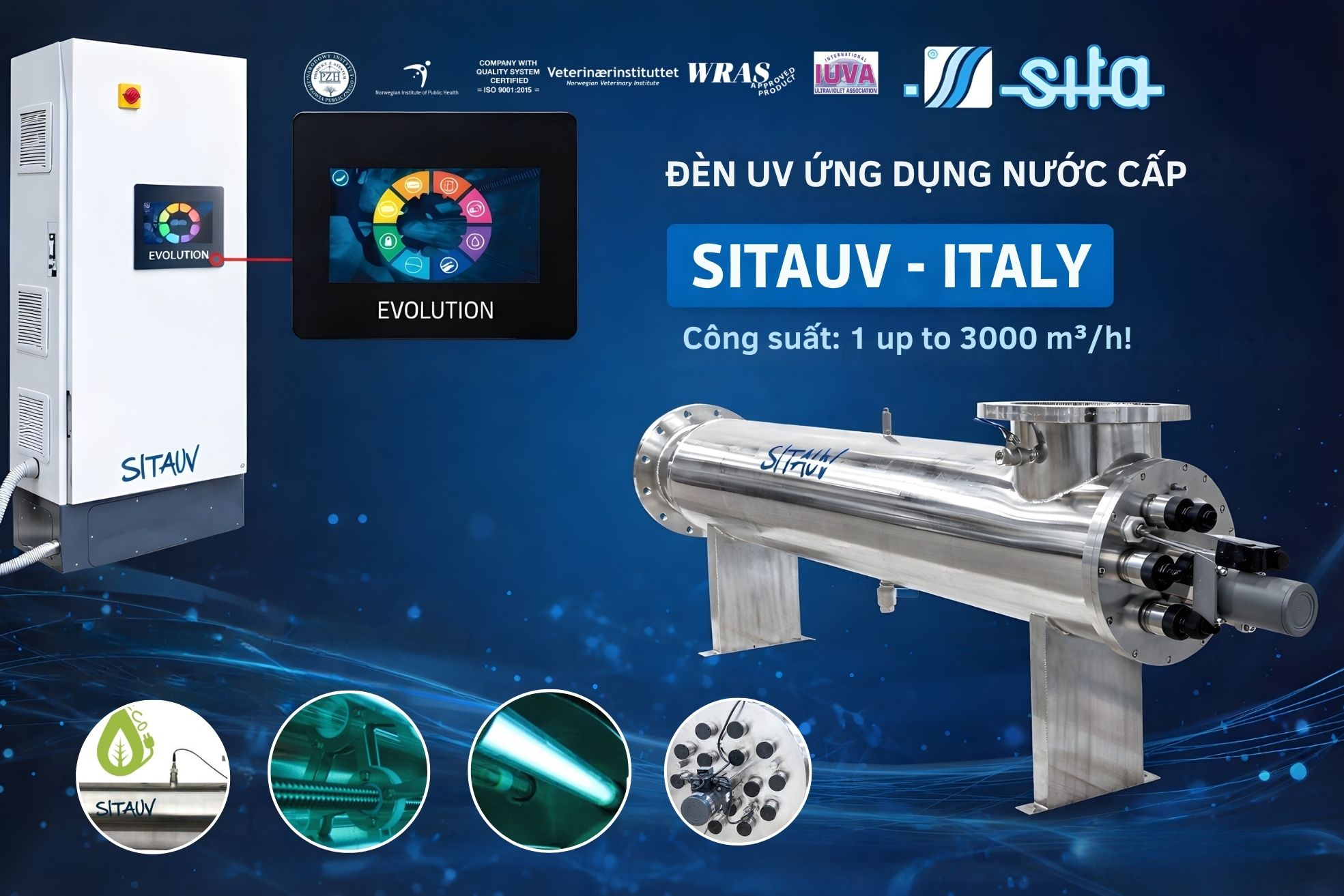 Đèn UV SITAUV Italy – giải pháp UV khử trùng nước hiệu quả, tiết kiệm, đạt chuẩn châu Âu. Ứng dụng nước cấp & nước thải, tư vấn & báo giá nhanh.