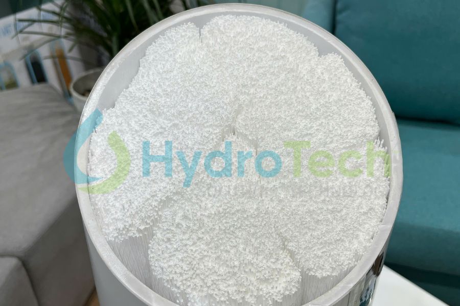 Cấu tạo của lõi lọc UF: Lõi lọc UF thường được cấu tạo từ các sợi rỗng (hollow fiber) trắng muốt. Mỗi sợi màng có đường kính cực nhỏ, với kích thước lỗ rỗng chỉ từ 0,01 đến 0,1 µm.