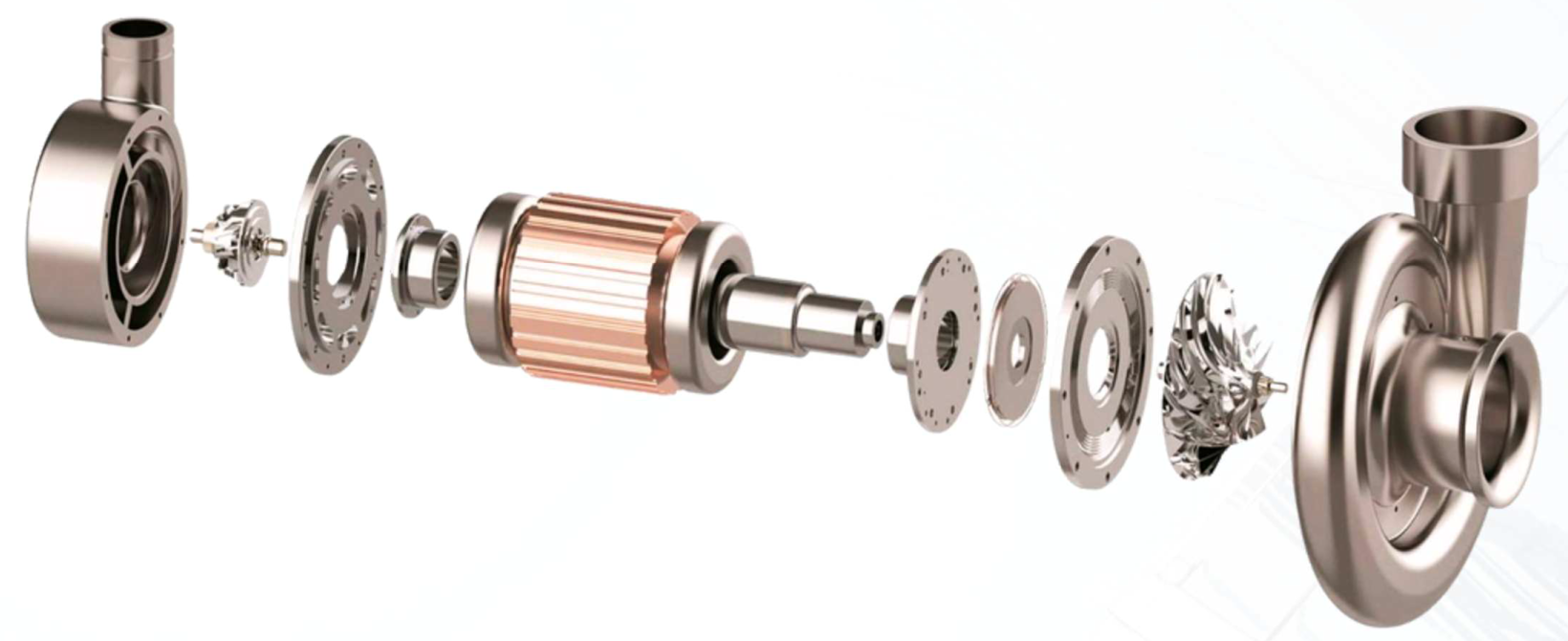 • Động cơ đồng bộ nam châm vĩnh cửu (PMSM): Cho phép tốc độ quay cực đại lên đến 100,000 vòng/phút với hiệu suất năng lượng vượt qua mức 95%. Động cơ được kết nối trực tiếp với cánh quạt, giúp triệt tiêu hao hụt truyền tải cơ học.
